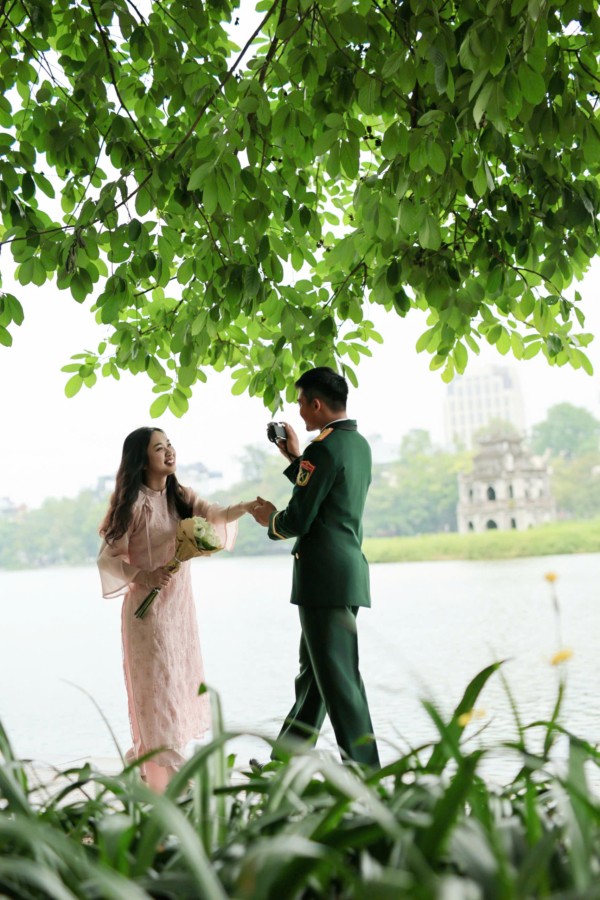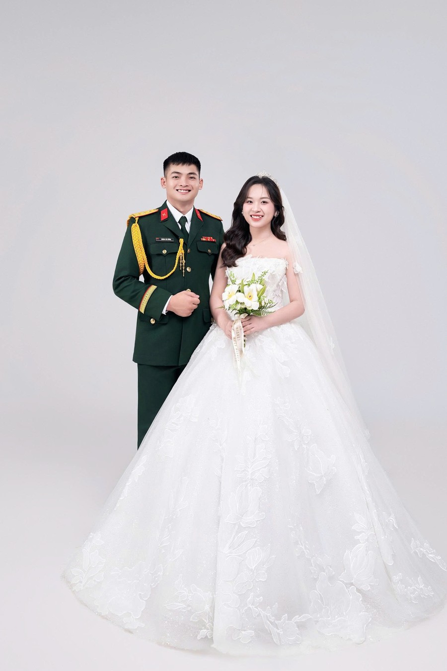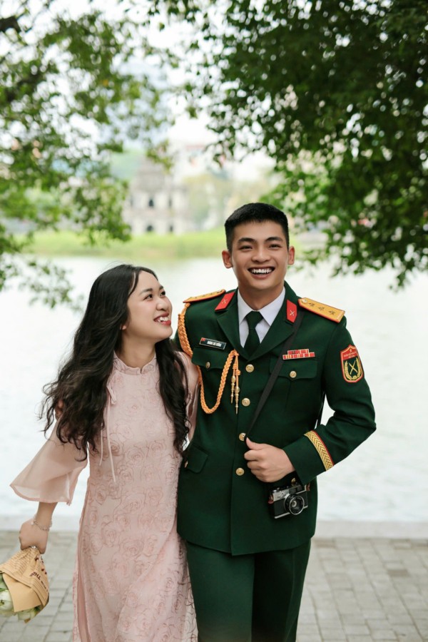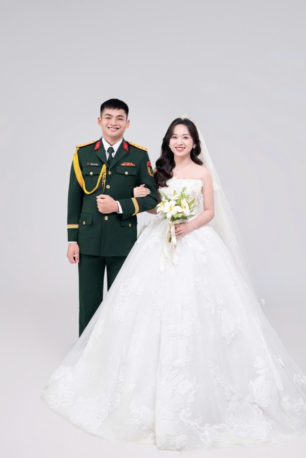 Chú rể là một người lính được đào tạo trong môi trường quân ngũ, rèn giũa bởi kỷ luật, sức mạnh và tinh thần trách nhiệm. Anh mang trong mình bản lĩnh của người chiến sĩ: kiên cường, chững chạc và luôn đặt nhiệm vụ lên hàng đầu. Dù những tháng ngày hành quân vất vả hay những đêm trực dài, trái tim anh vẫn luôn hướng về một nơi – nơi có người con gái anh thương đang chờ.