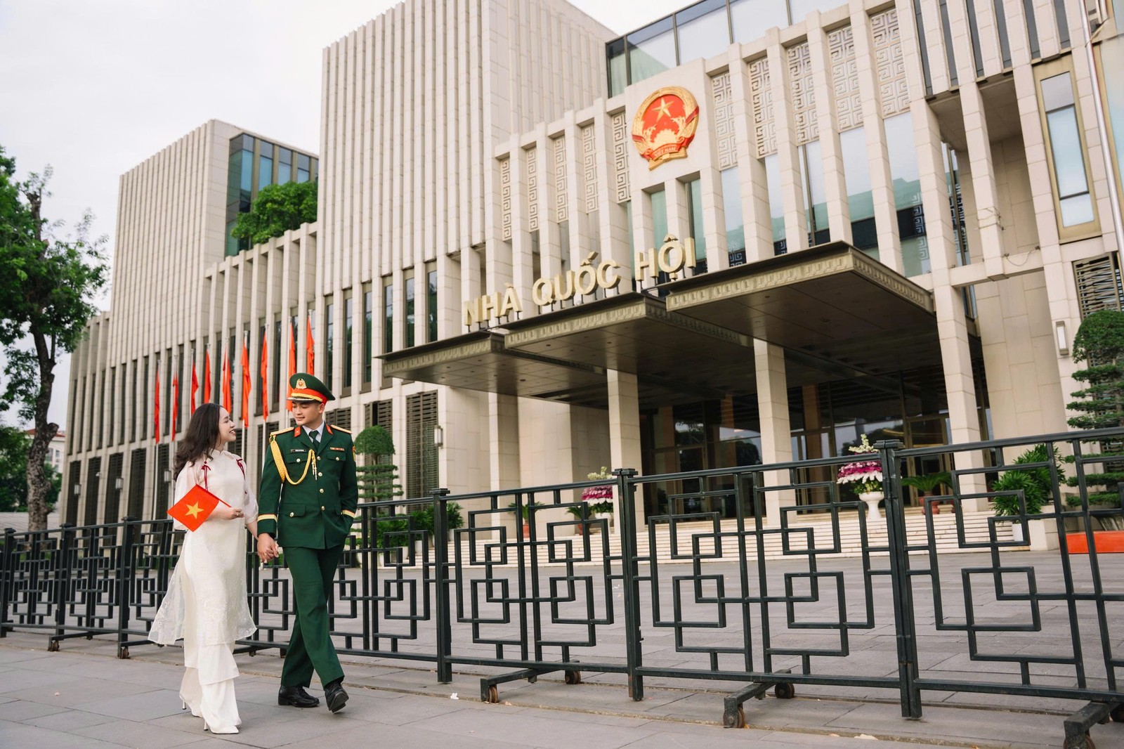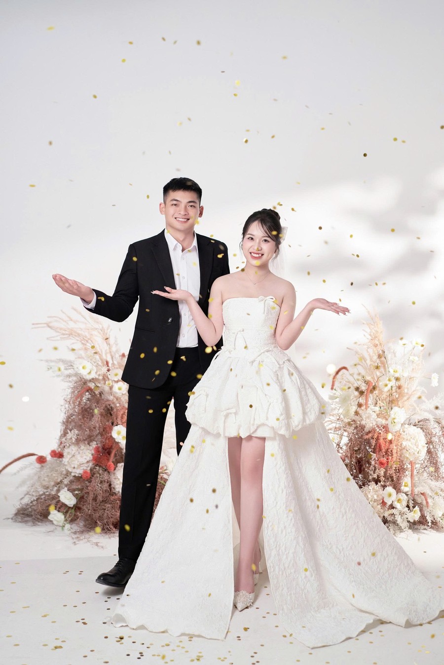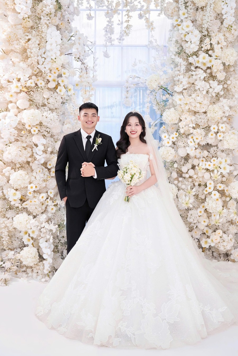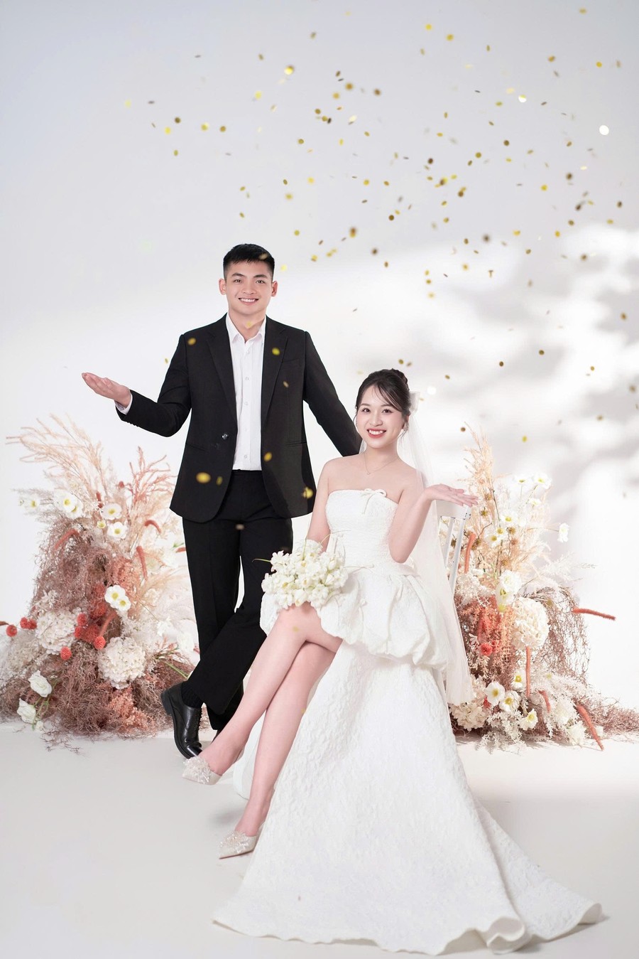 Cô dâu là một hậu phương dịu dàng nhưng vững vàng, luôn lặng lẽ bên cạnh anh qua từng cuộc gọi vội vàng, qua những lần tạm biệt để anh tiếp tục nhiệm vụ. Bằng sự thấu hiểu, nhẹ nhàng và kiên nhẫn, cô là nguồn động viên ấm áp để người lính ấy thêm mạnh mẽ bước tiếp.